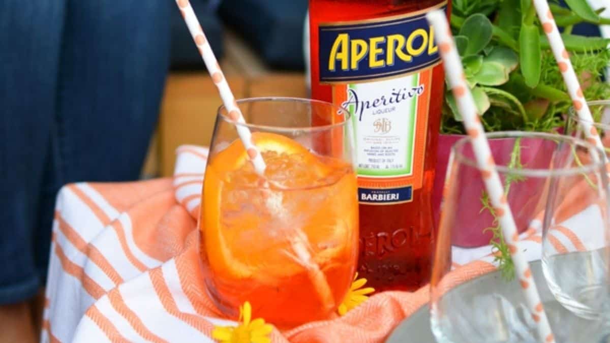 Aperol, Prosecco and soda water. The end result is an Aperol Spritz, ready to drink out of the bottle! Or pour over ice in a wine glass and garnish with an orange wedge!