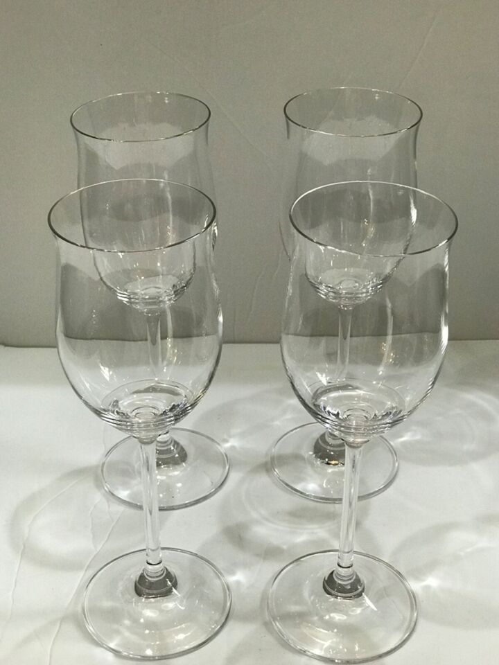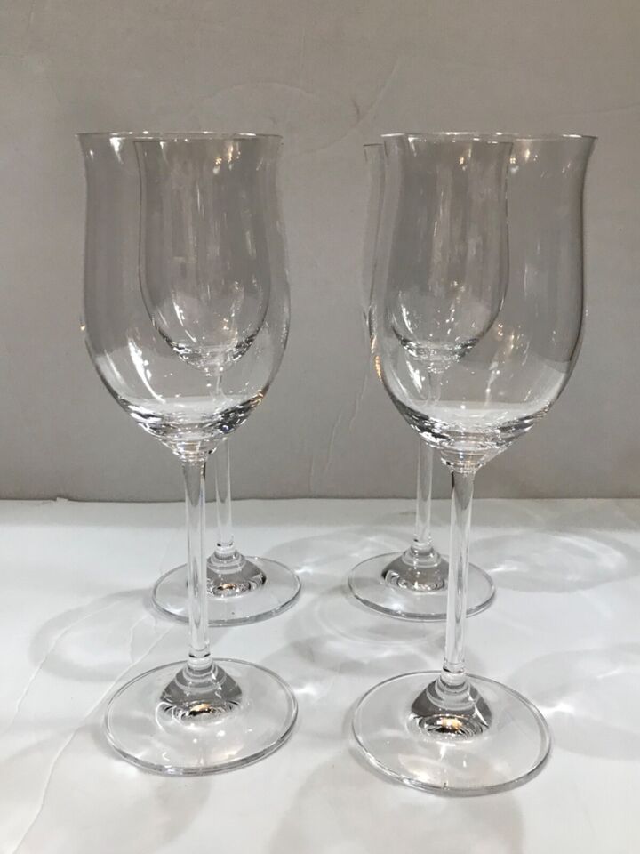 These beautiful white wine glasses by Waterford Marquis Crystal have a graceful tulip shape. The stem is long and sleek and the bowl extends up and has a slight flair like a tulip. It is non-leaded crystal. Tulip glasses are recommended to hold champagne, as it permits the drinker to experience more full aromas than a flute while the mouth is still narrow enough to avoid quick loss of carbonation.