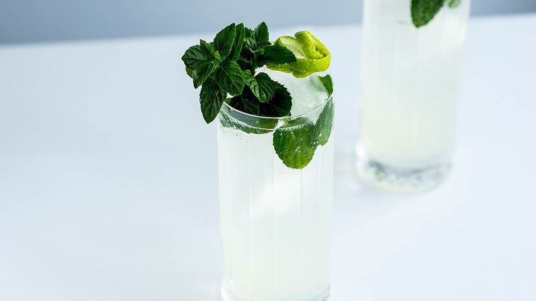 To keep these bottled cocktails as close to a drink you'd get from a bar, we use lime wedges, not lime juice, when making a mojito. When muddling fresh lime wedges, we are able to extract oils from the peel, enhancing the lime juice. We gently muddle in mint, add in the sugar, rum, [Zero-filtered] water, and shake vigorously to combine/integrate all the flavors.