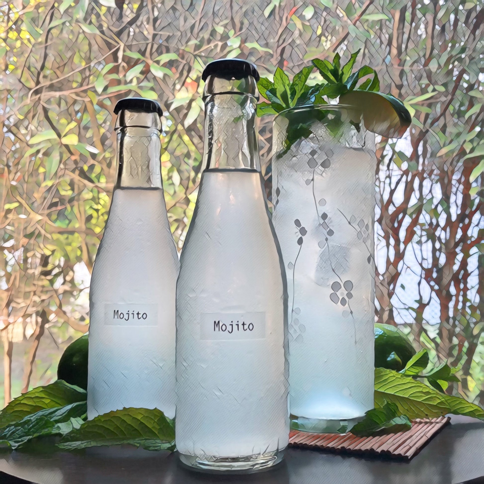 The end result is a Mojito, ready to drink out of the bottle! Or pour over ice if you'd like and garnish with a sprig of mint!