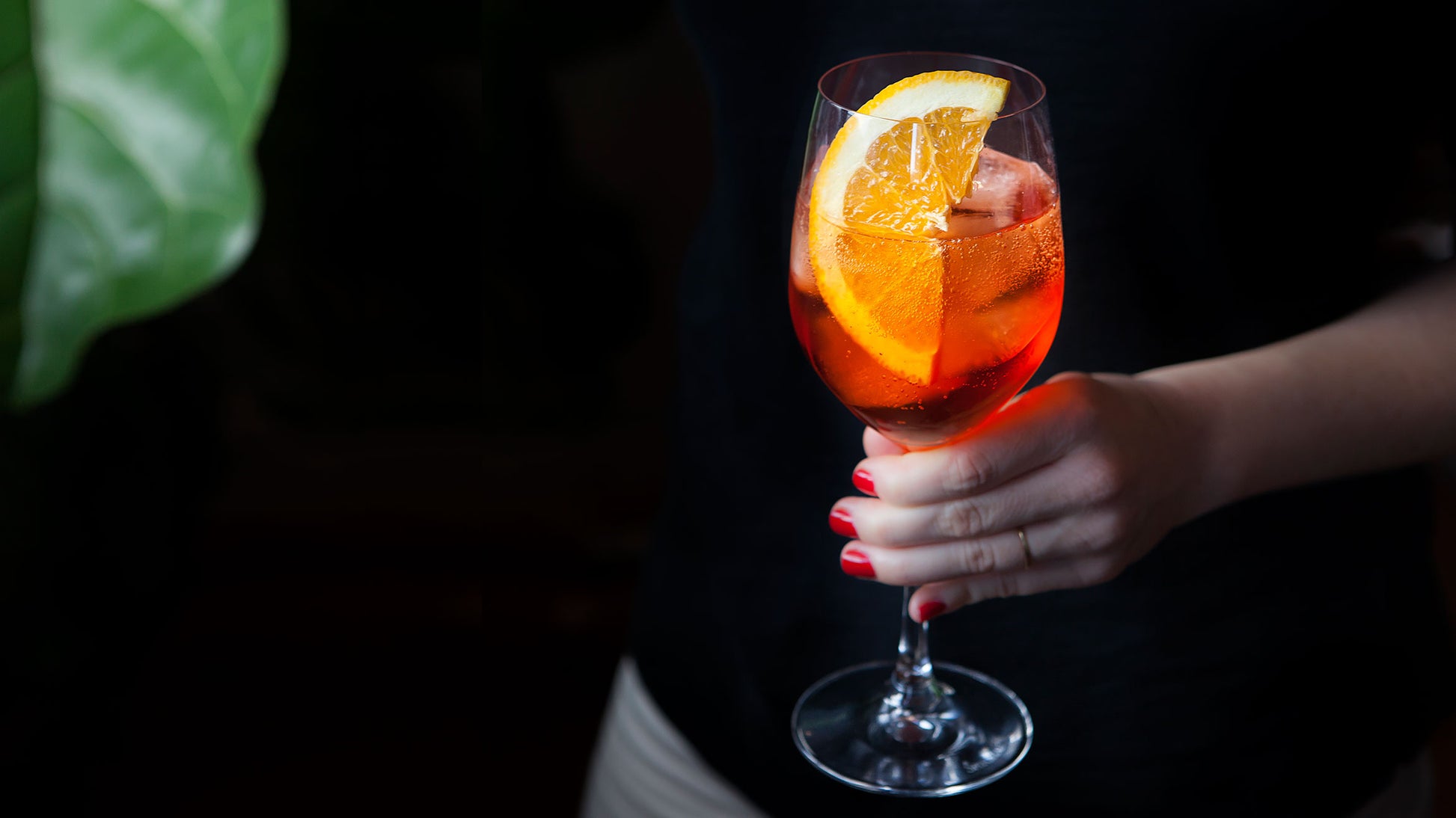 Prosecco, Strawberry-Infused Aperol, St-Germain, Soda Water